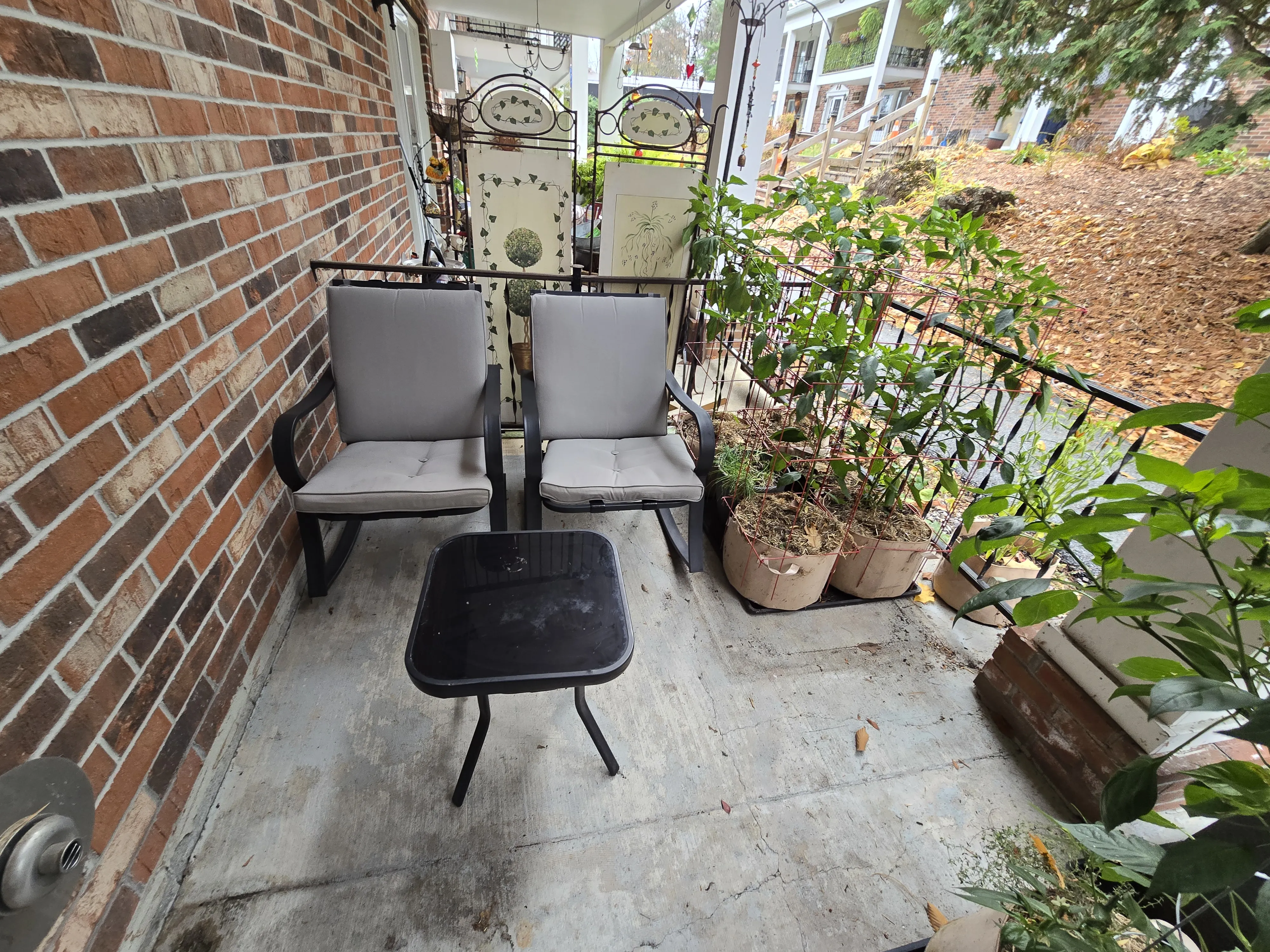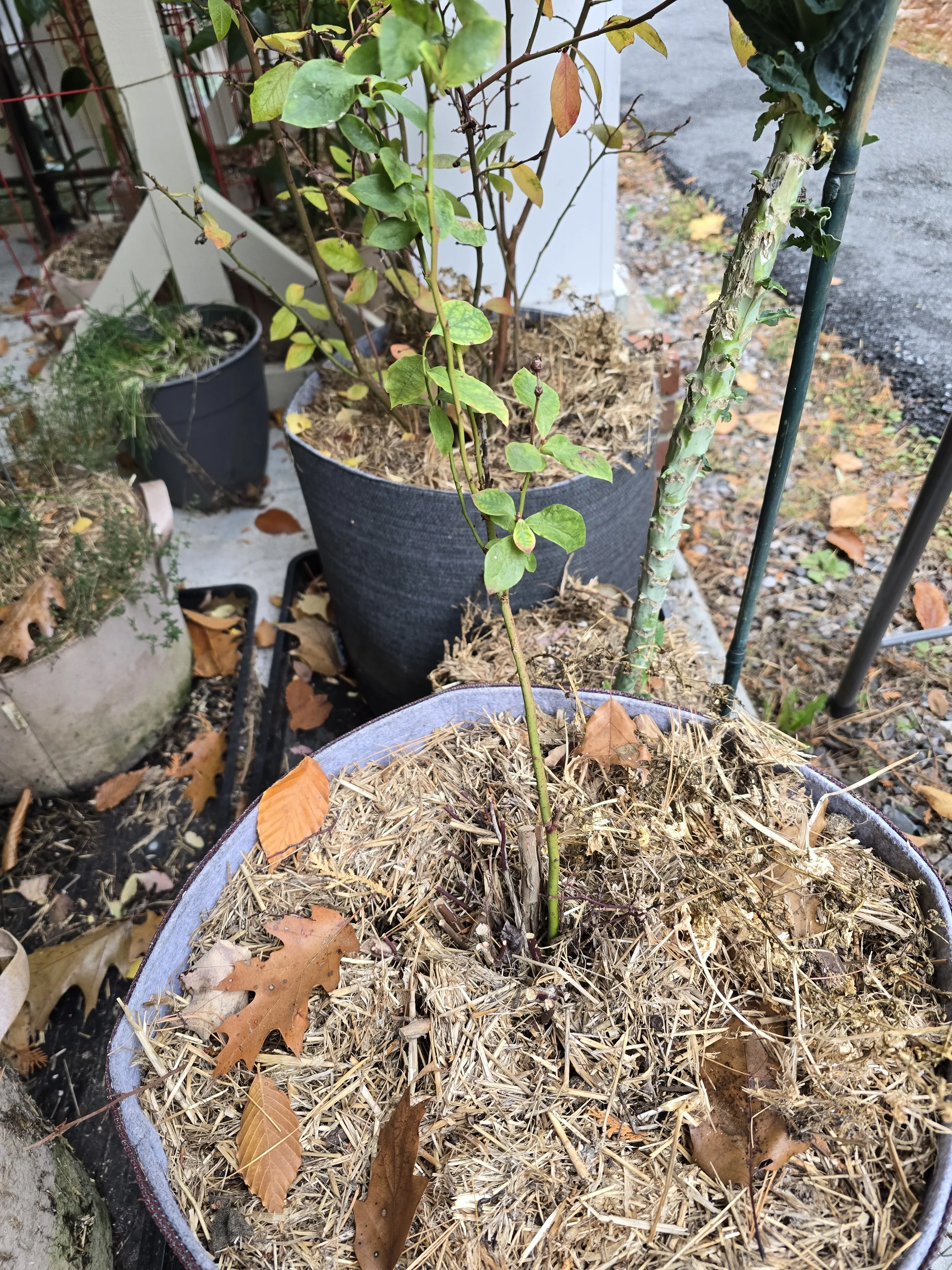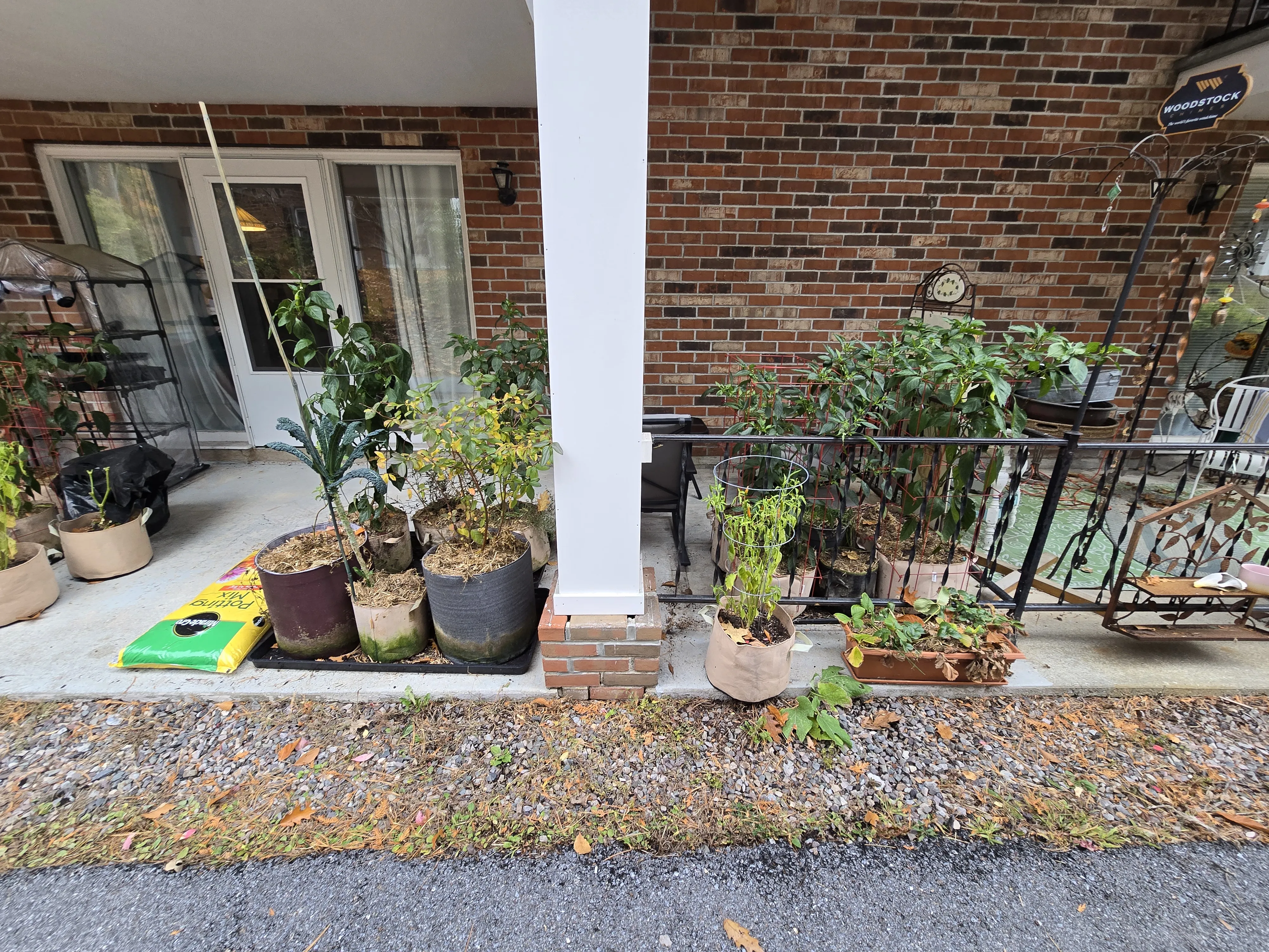 The patio plants may be enjoy whatever microclimate is going on patio to keep them green, but the days continue to get short. With the decent weather and daylight this Saturday, it was time to place trellis parts in the shed. The neighbor’s leaf blower was also used to blow out leaves and debris from the concrete.