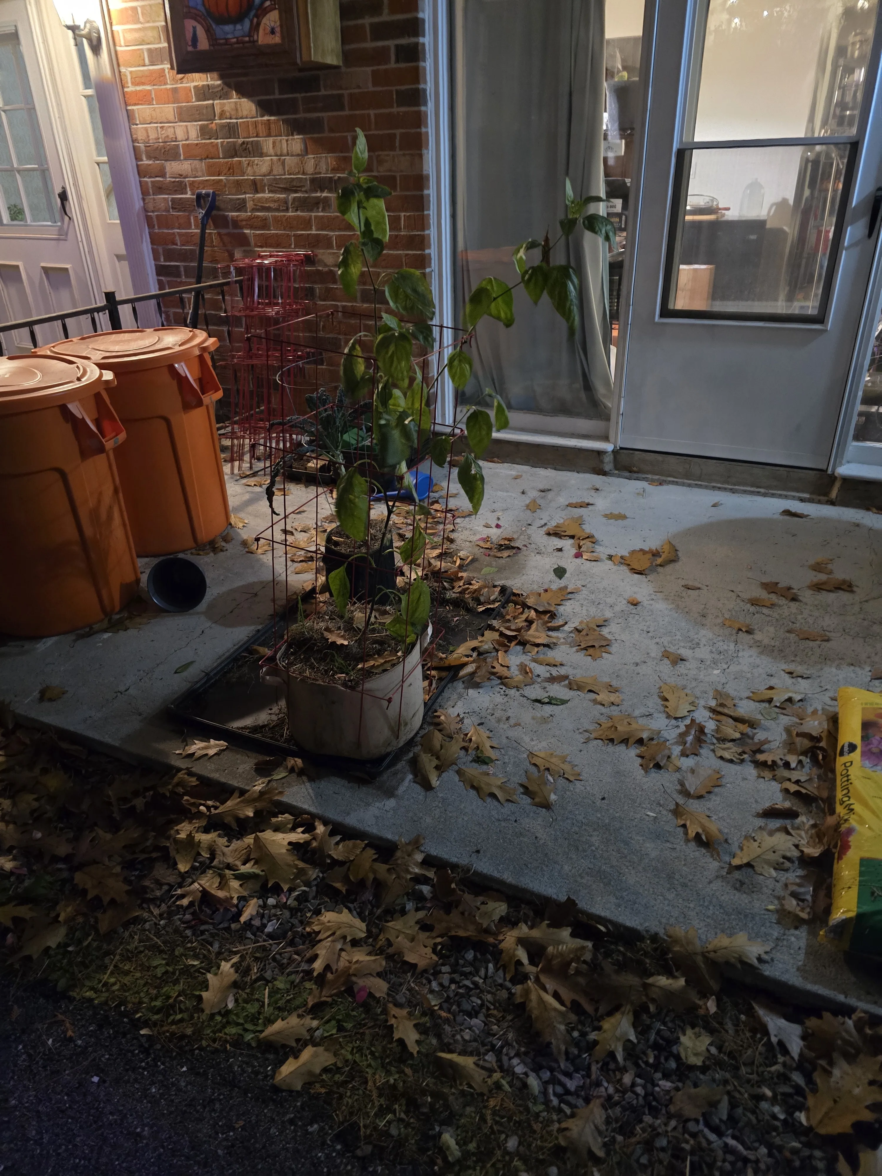 With the majority of the peppers now inside the patio is beginning to look less cluttered. The only remaining peppers outdoors are banana peppers I do not intend to overwinter. I will need to push back blueberry bushes and strawberry patches closer to the building once winter truly begins.