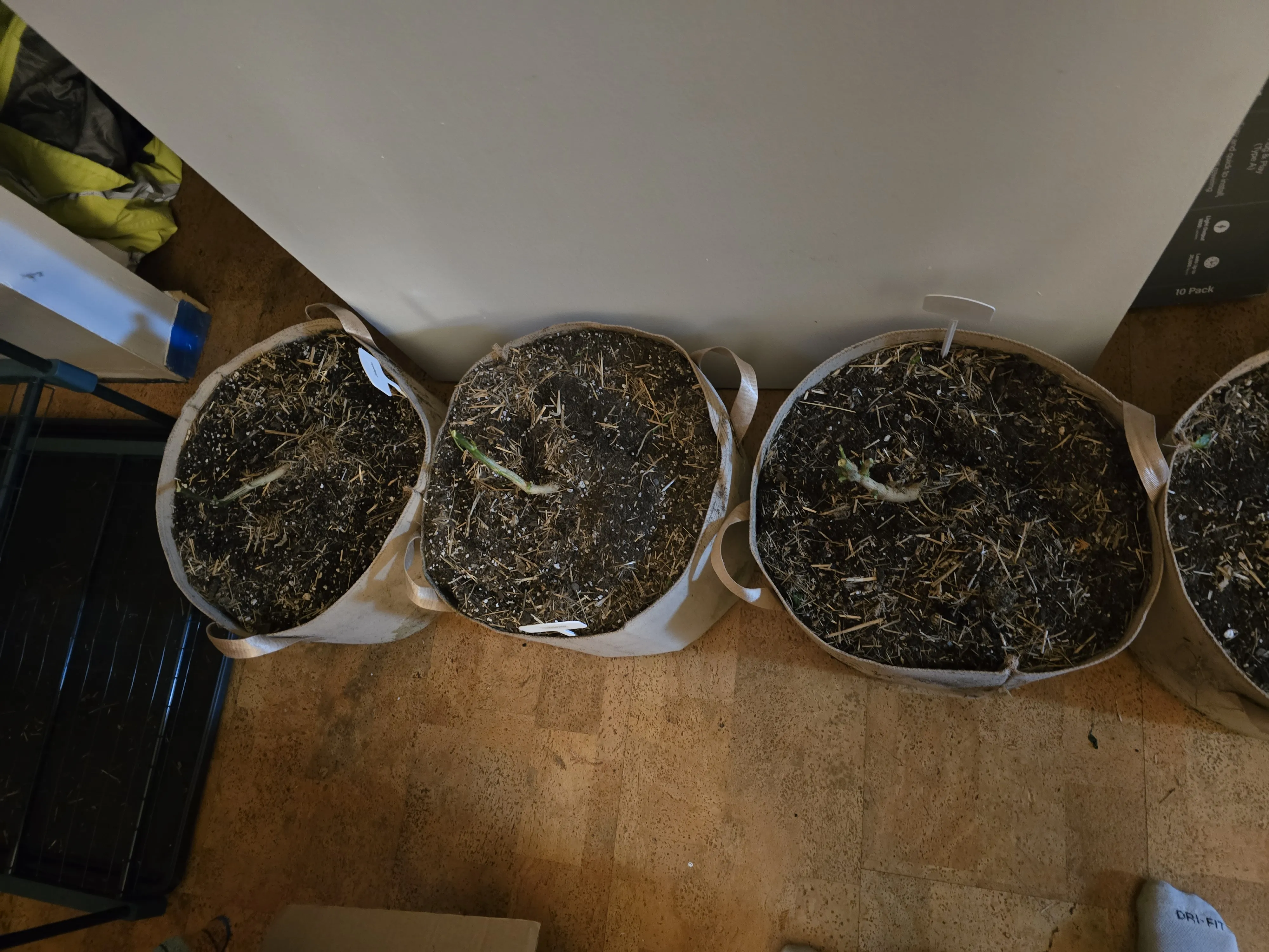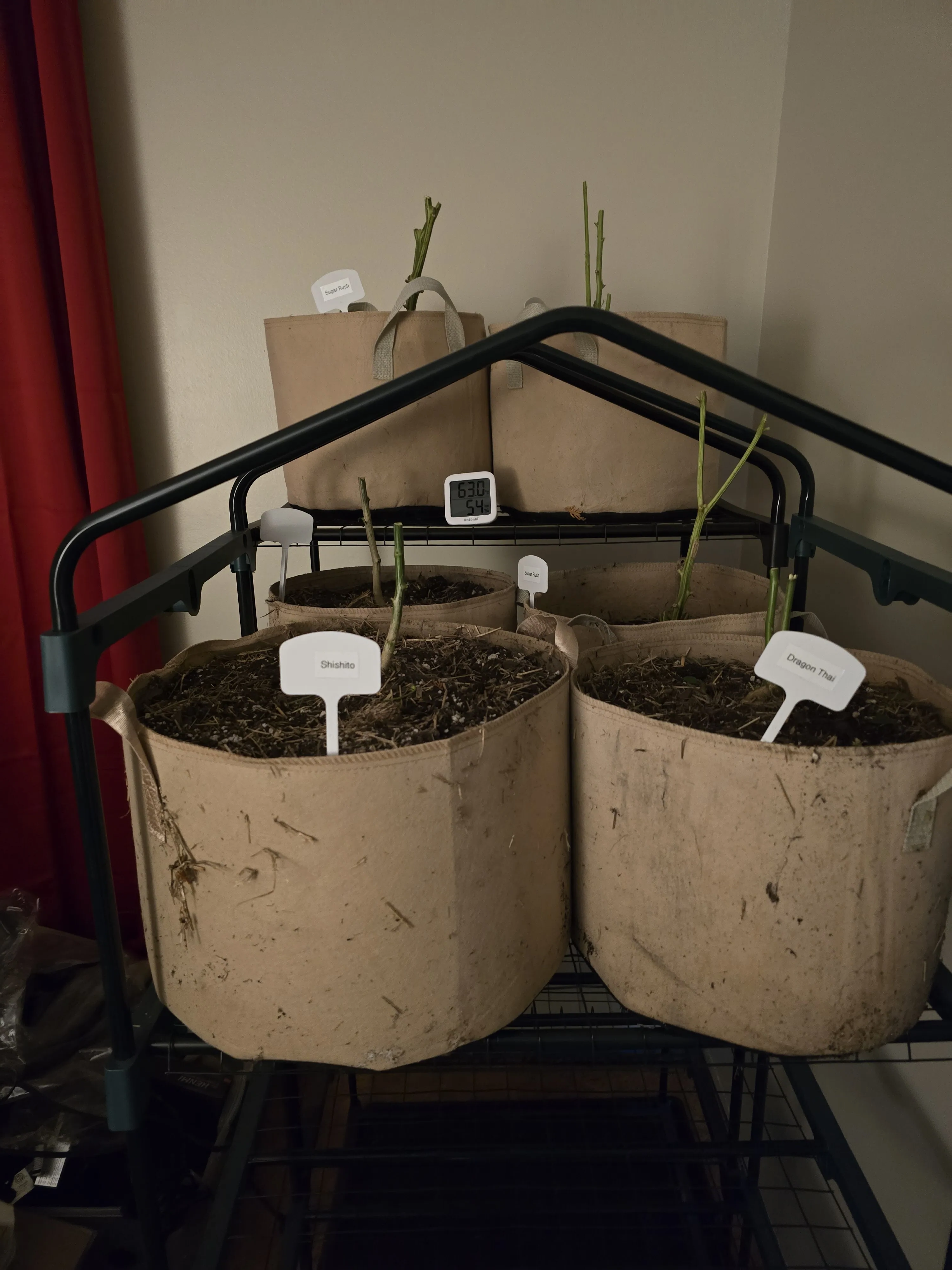 I will get to transplanting on Sunday. Giving the current containers more time to dry out in the spare bedroom. Current readings in there are around 63 degrees Fahrenheit at about 54% relative humidity. It’s a little high in both, but I suspect that the temperature will drop as the days continue to be colder. The room thermostat is set to kick on around 58 degrees Fahrenheit.