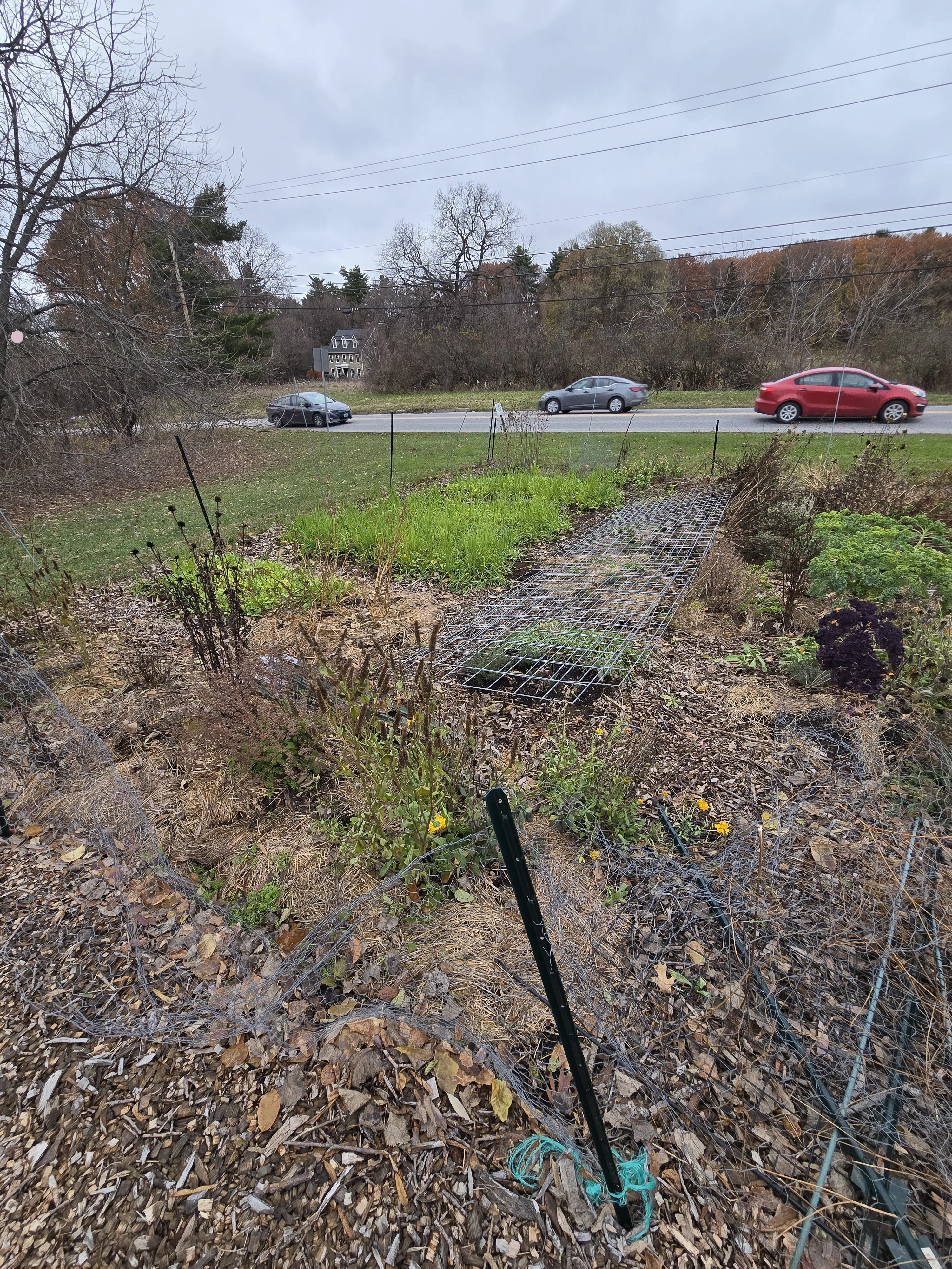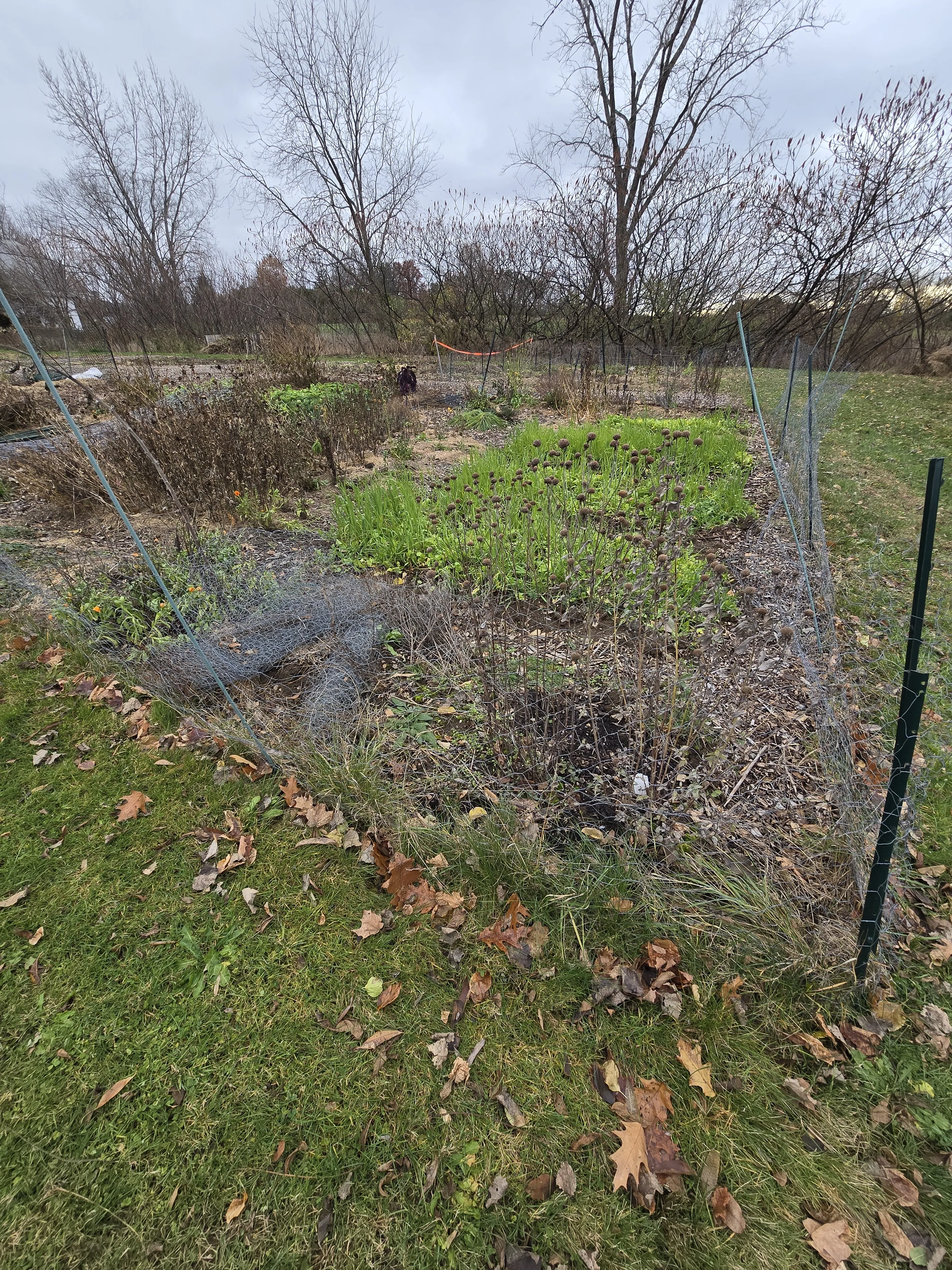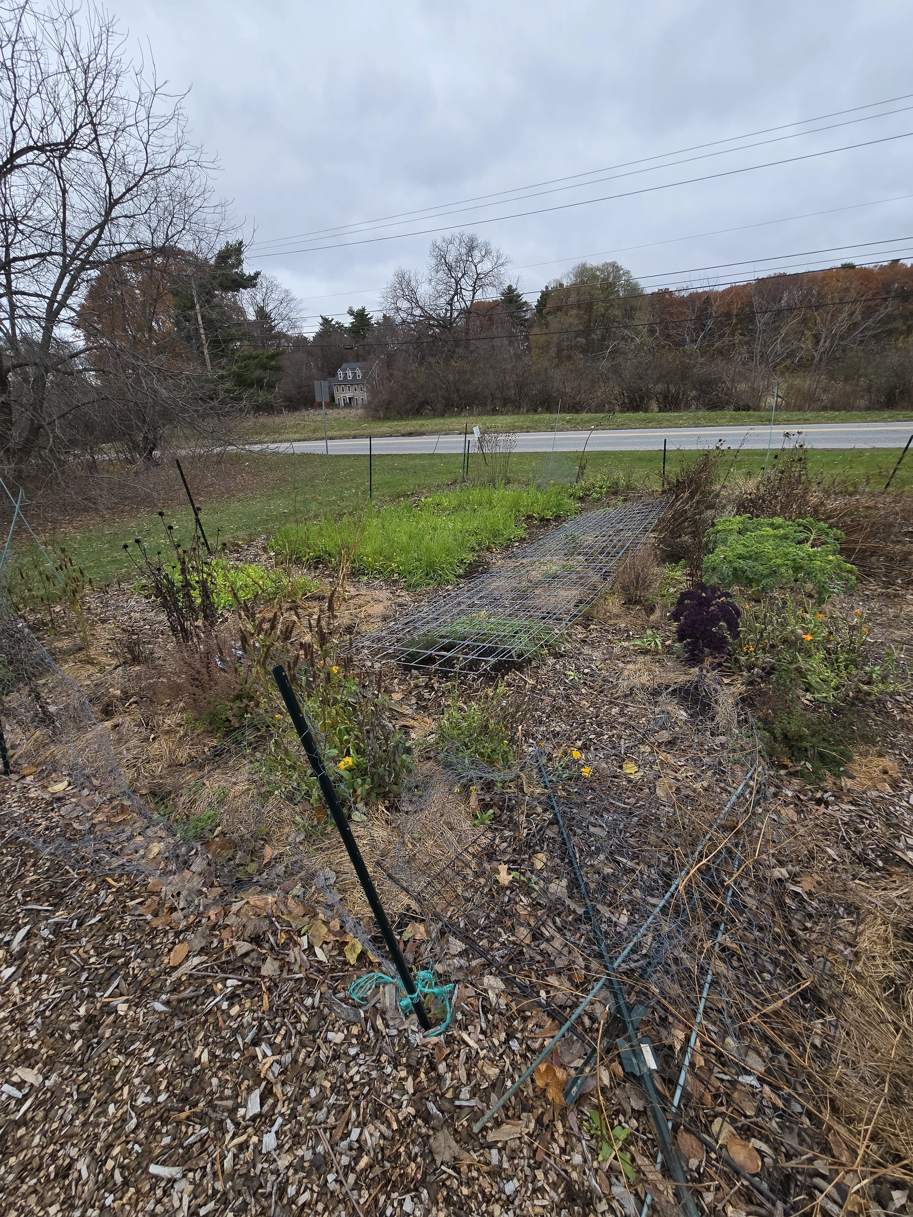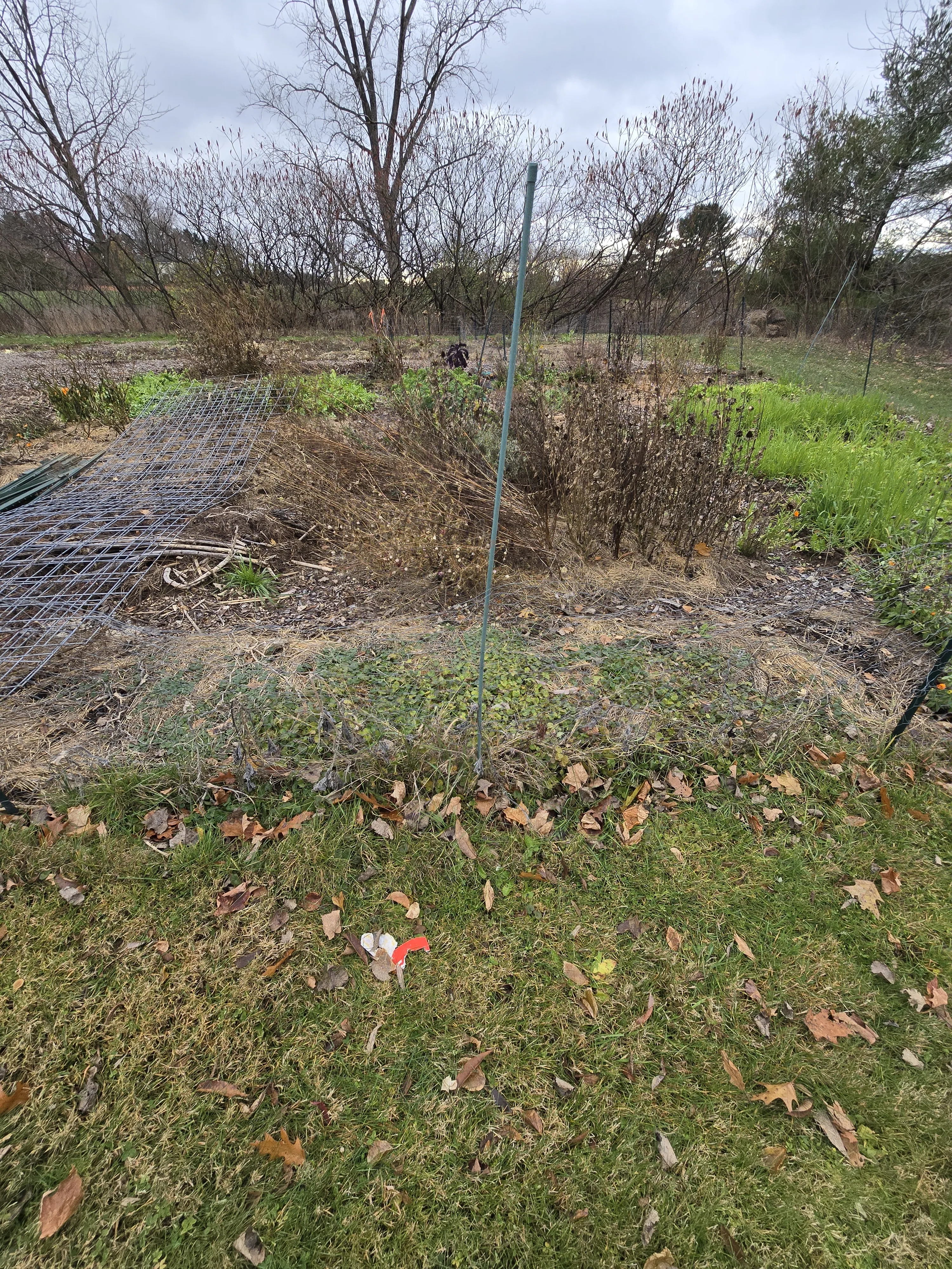 I noticed there is some kale ready to be picked at any time. The trellis material was moved from the original no till plot to this plot.